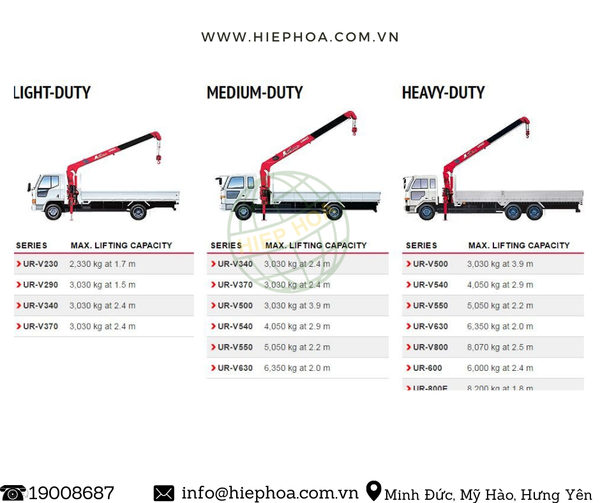Đại lý phân phối chính thức cần cẩu thủy lực UNIC của tập đoàn FURUKAWA UNIC tại Việt Nam. FURUKAWA UNIC CORPORATION là một trong những nhà sản xuất cần cẩu thủy lực lớn nhất và hiện đang nắm giữ 50% thị trường cần cẩu tại Nhật Bản. Với thiết kế tối ưu và năng lực vượt trội, thương hiệu cần cẩu của FURUKAWA UNIC CORPORATION là một tiêu chuẩn vàng cho cần cẩu chất lượng cao tại Nhật Bản trong nhiều thập kỷ, đã và đang xuất khẩu đến hơn 70 quốc gia trên toàn thế giới. Sự kết hợp giữa Hiệp Hòa và UNIC là sự kết hợp hoàn hảo của nhà sản xuất cần cẩu Nhật Bản có uy tín lớn trên thị trường quốc tế và công ty lớn nhất tại Việt Nam về nghiên cứu và sản xuất xe chuyên dùng tại Việt Nam.