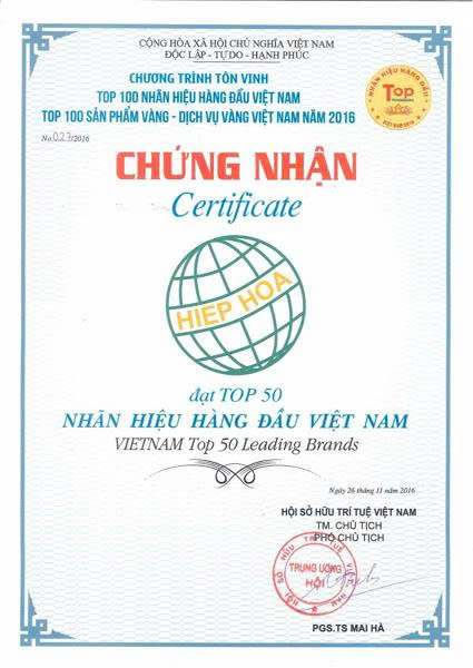 Hình ảnh 5: Chứng nhận đạt top 50 nhãn hiệu hàng đầu Việt Nam